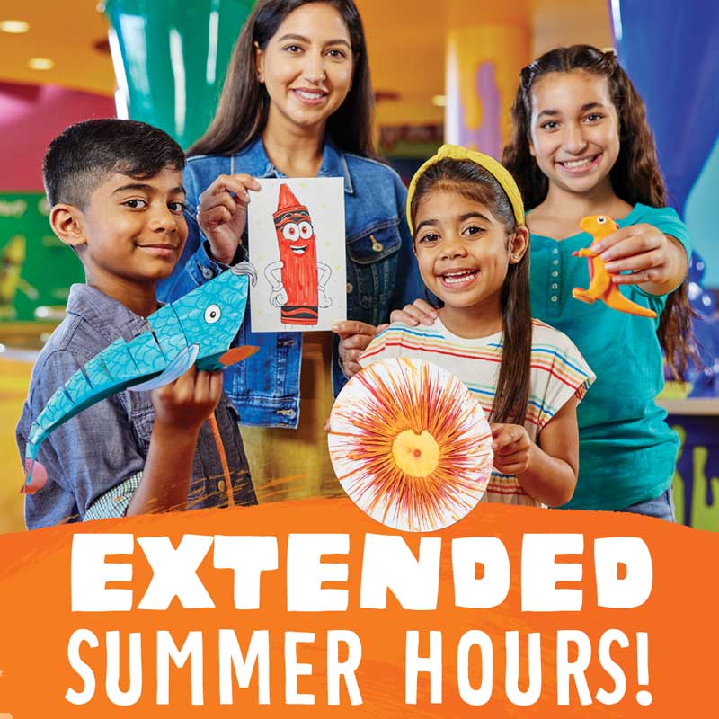 All Events Extended summer hours Extended hours = more colorful fun at Crayola Experience Easton!From June 16-Sept. 1, our attraction will be open daily from 10 a.m. until 6 p.m.
