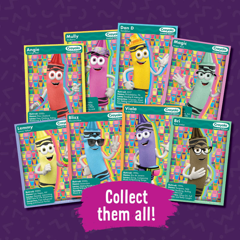 Limited Edition items are available at The Crayola Store and food & beverage areas throughout the attraction. Available Trading Card styles will rotate throughout the Crayon Tour. Collect new cards each time you visit!