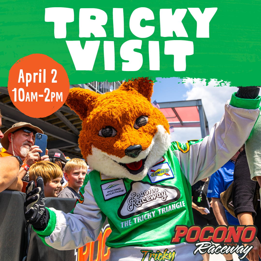 The Pocono team will be onsite with their pace truck, giveaways, and of course Tricky, the fastest fox in motorsports!