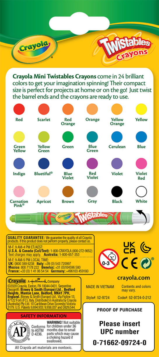 CRAYOLA SAFETY: Our Crayons meet the highest global testing standards and are totally safe and non-toxic.
