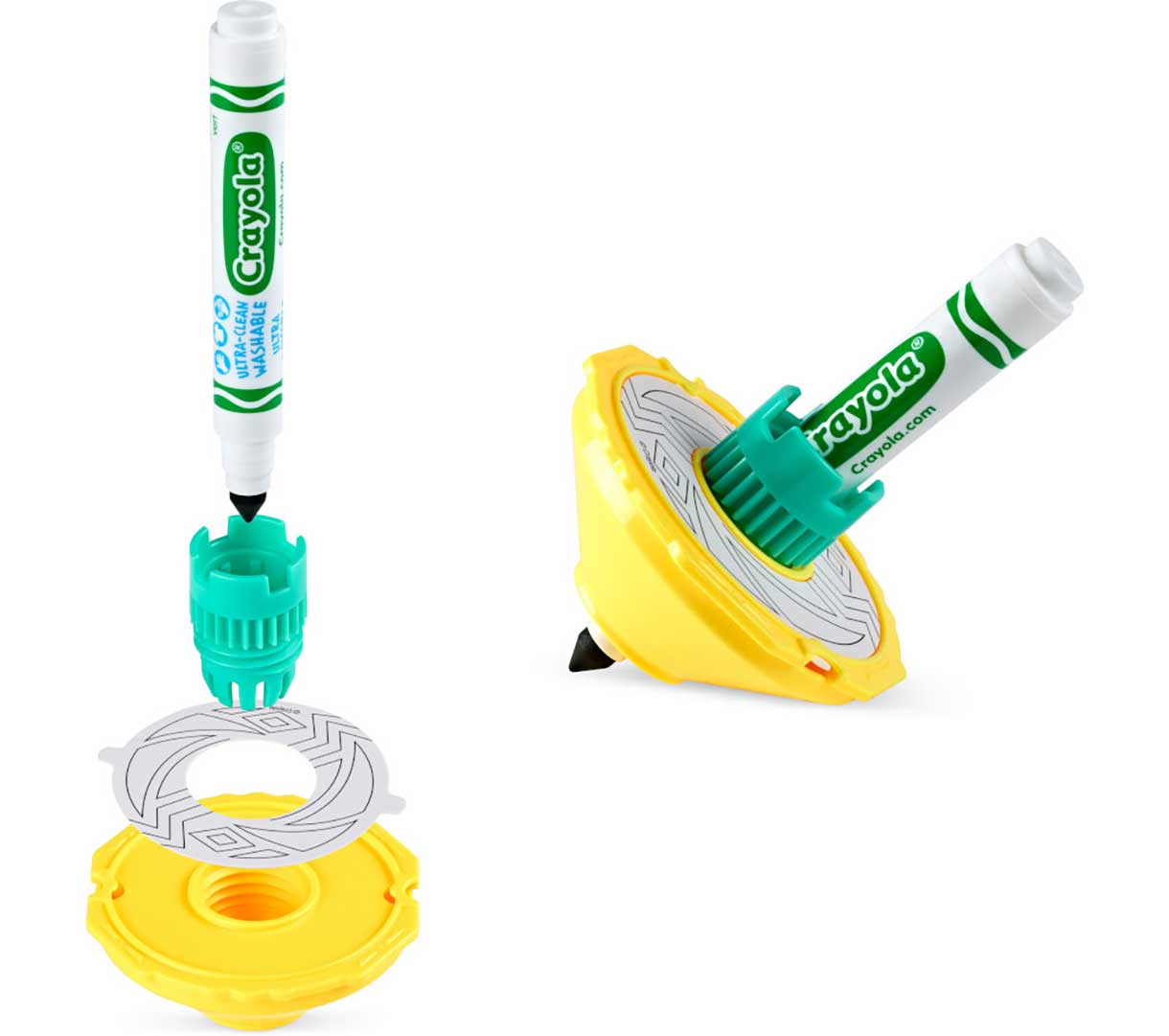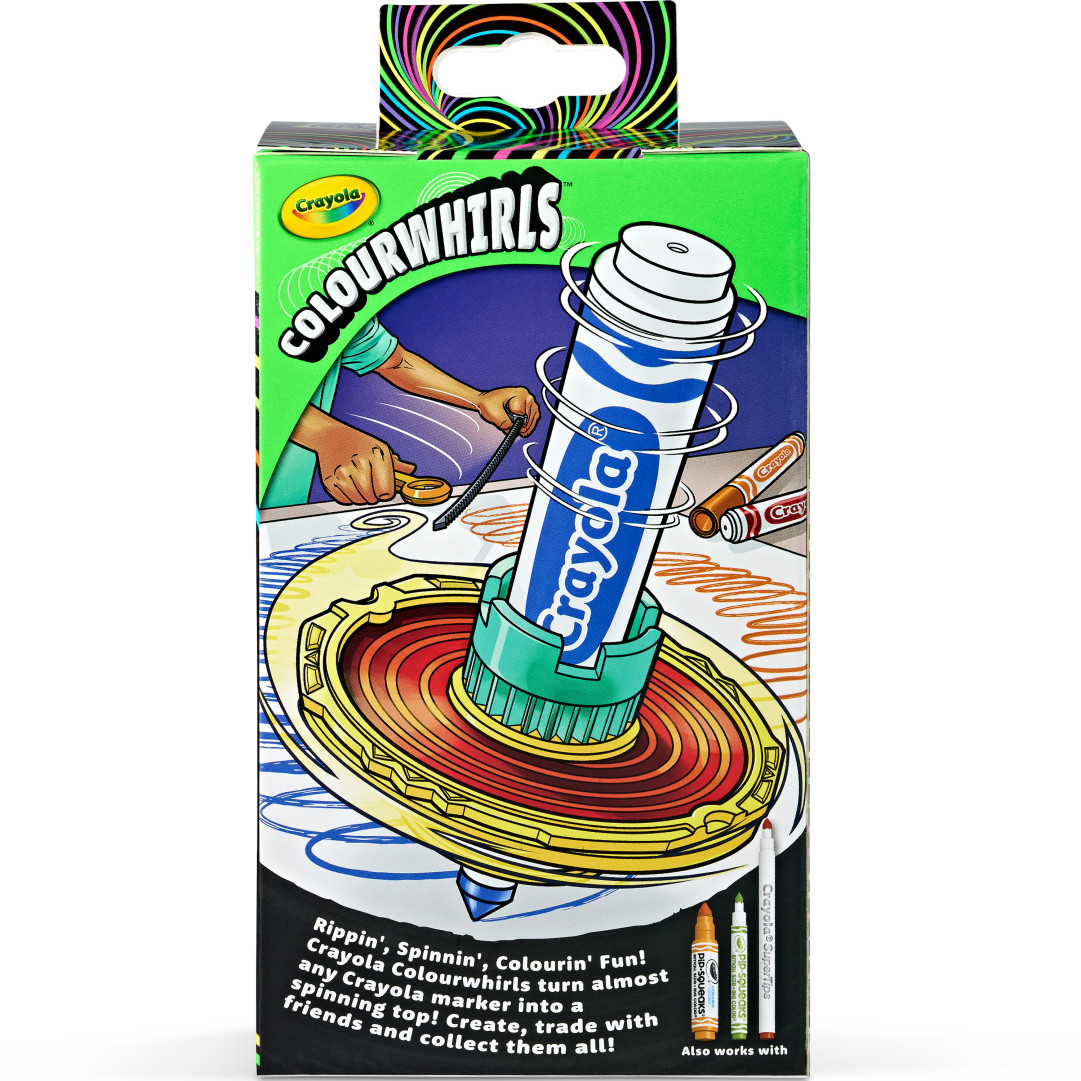INCLUDES: Colourwhirls Unit (6 colours available), 1-in-1 Rip & Spin Handle Unit, 1 Crayola Ultra-Clean Washable Marker.