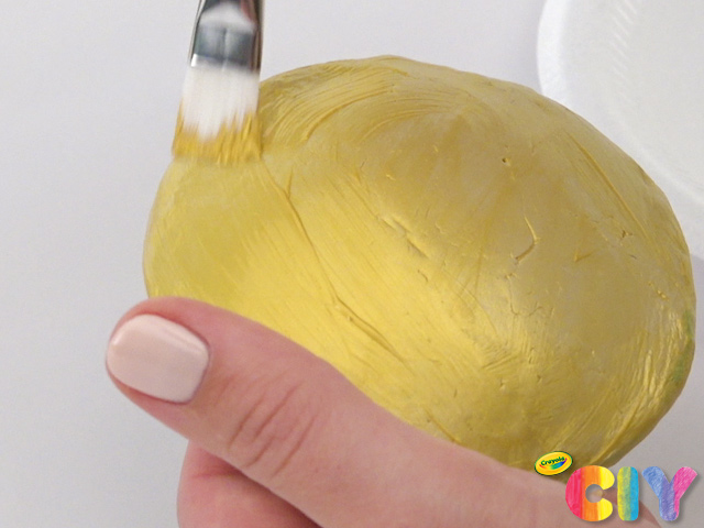 Flip dish upside-down and add 1–2 coats of washable paint with paint brush. Dry 1–2 hours.