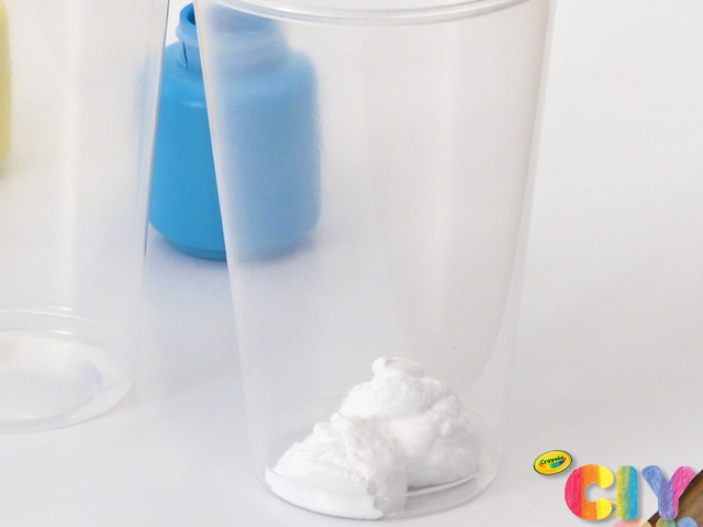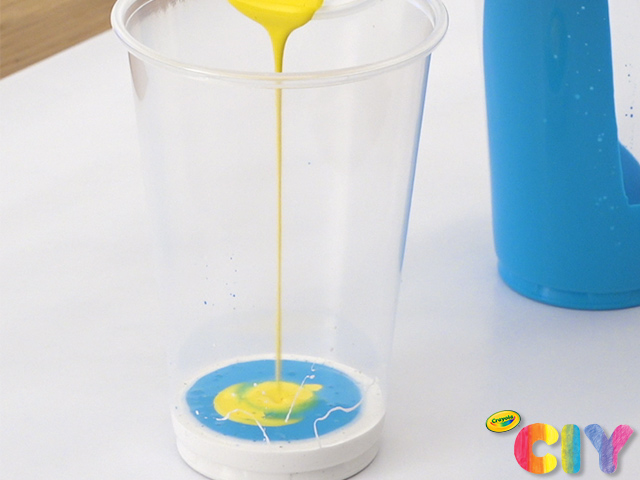 In a separate cup, pour layers of color on top of one another. Alternate colors until you have used all of the acrylic paint.