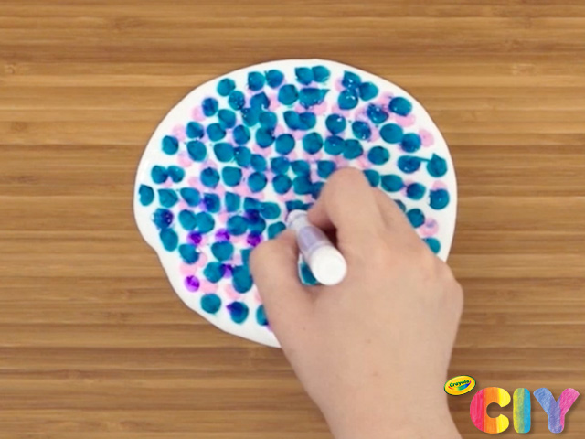 Remove your slime mixture from the bowl and add dots of color using markers.