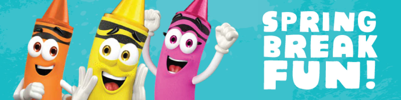 Meet our colorful crayon character! Daily during Spring Break at 12:30pm, 2:30pm, 4:30pm and 6:30pm* *6:30pm appearance excluded on March 22.